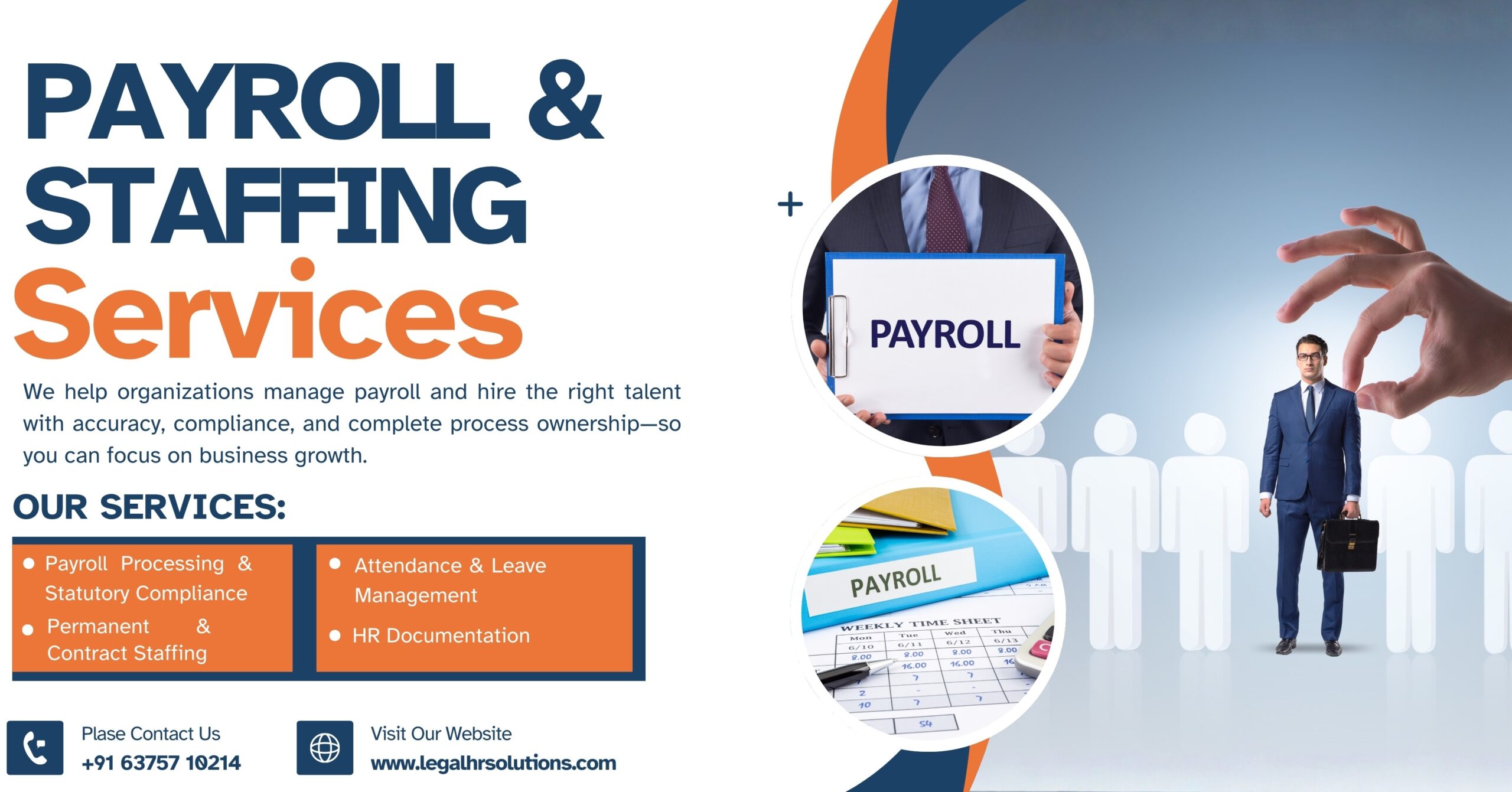 GLHR’s Payroll & Staffing Services provide end-to-end workforce administration by combining payroll processing, statutory compliance, and employee lifecycle management. We act as an extended HR operations partner, enabling organizations to focus on business growth while we manage people, processes, and compliance.